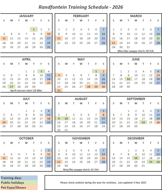 The schedules for the various branches are sometimes different due to events beyond our control - please ensure that you have the right branch when checking dates.Drop us a line at Head Office info@mckaynine.co.za if you need any clarification. Thank you.Click on the branch below to view the schedule:•Honeydew•Midstream•Delta•Randburg•Randfontein•Randpark Ridge (by appointment so no set schedule)